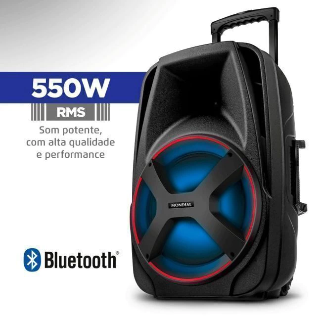 A caixa amplificada Mondial CM-550 possui alta potência com 550W rms, alto falante de 12 e som limpo de alta qualidade.