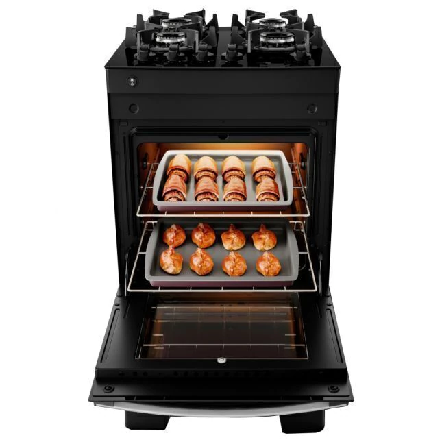 Com mesa em vidro temperado, acendimento automático e queimadores potentes, ele combina design moderno com facilidade no dia a dia. Seu forno possui capacidade ideal para assar desde receitas rápidas até aquele almoço especial em família. Além disso, os botões são removíveis, facilitando a limpeza e garantindo maior higiene.