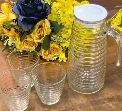 A Jarra de Vidro Lyor possui design único de colmeia, perfeito para servir seus convidados, pois além da jarra vem um conjunto lindo de 6 copos de 250ml. A textura deixa o produto ainda mais bonito e temos certeza de que sua mesa será o centro das atenções. A LYOR proporciona qualidade e praticidade, sempre deixando sua casa mais completa.