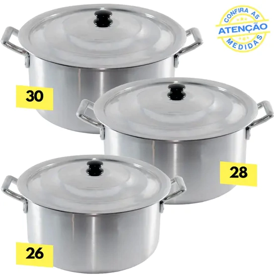 O Jogo de Caçarolas Industriais em alumínio é a escolha ideal para cozinhas comerciais, como restaurantes e hotéis, que exigem utensílios de alta qualidade, durabilidade e desempenho. Composto por 3 peças de tamanhos variados (26 cm, 28 cm e 30 cm), esse conjunto é perfeito para o preparo de uma ampla gama de receitas, desde pratos individuais até porções maiores.