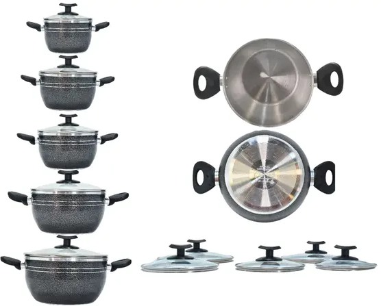 Cozinhe com mais praticidade e elegância com este incrível conjunto de panelas antiaderentes! Fabricadas com material de alta qualidade, essas panelas possuem revestimento interno que evita que os alimentos grudem, facilitando a limpeza. A base conta com tecnologia que distribui o calor de maneira uniforme, garantindo um cozimento rápido e eficiente.