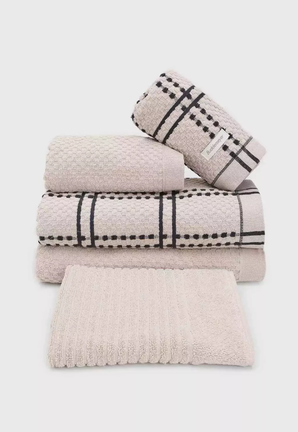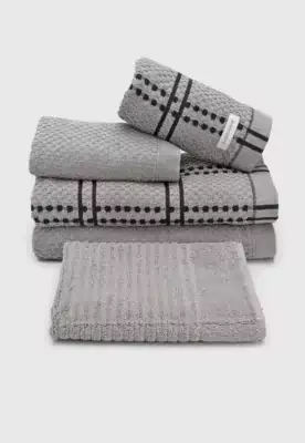 Conteúdo da Embalagem: 2 Toalhas de Banho, 2 Toalhas de Rosto e 1 Toalha para piso