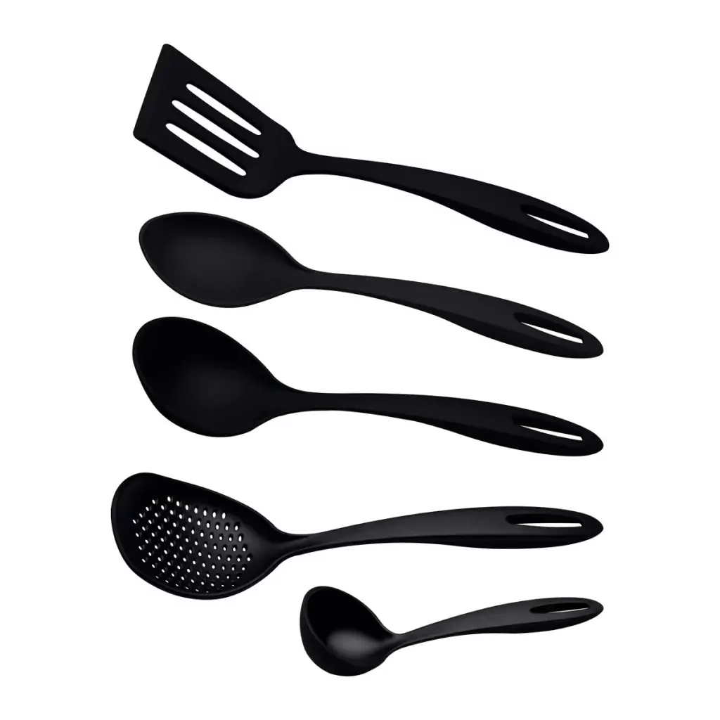 Com o jogo de utensílios Tramontina Ability em nylon 05 peças você tem os itens ideais para preparar e servir suas refeições. Perfeitos para serem usados em superfícies antiaderentes ou cerâmicas, pois não as danifica, os utensílios suportam temperaturas até 180 graus e possuem furo passante que permitem que sejam utilizados ainda, como decoração em sua cozinha!