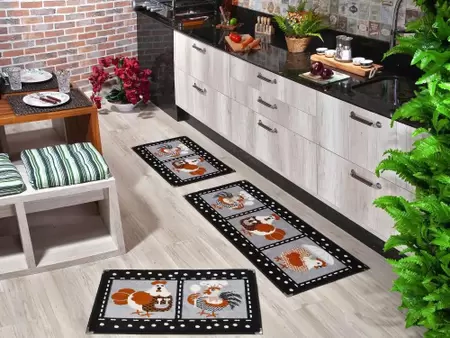 Jogo De Tapete Passadeira Cozinha Antiderrapante Com Ponteira 3 Peças Lancer O Jogo de Cozinha da linha Andino valoriza ainda mais sua cozinha promovendo um ar de sofisticação contribuindo com sua decoração, produzida com materiais de grande qualidade, sendo amplamente resistente e de longa durabilidade. É perfeita para deixar o ambiente mais agradável. Todo Detalhe faz a diferença. Aveludado Contém: 1 Passadeira 1,20m ( comprimento) x 0,50cm (largura) 2 tapete 0,80cm (Comprimento) x 0,50cm (Largura) Material: Superfície: 100% Propileno Base: 89% Polipropileno 11% Poliéster Com Base Antiderrapante Com