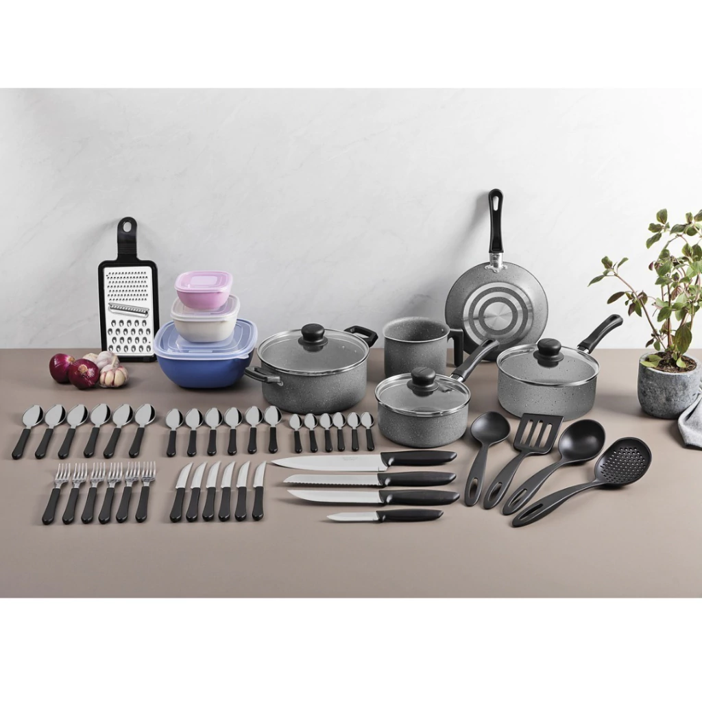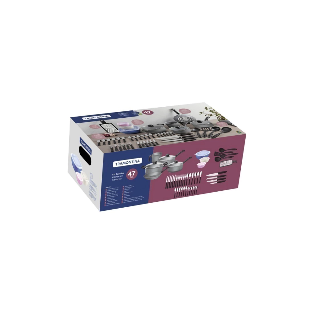 Kit Tramontina com 47 peças traz tudo o que ela precisa para brilhar na cozinha: panelas, talheres, facas e utensílios com o padrão de excelência. Prático, durável e elegante, é ideal para o dia a dia ou ocasiões especiais. Um presente que une funcionalidade, beleza e carinho.