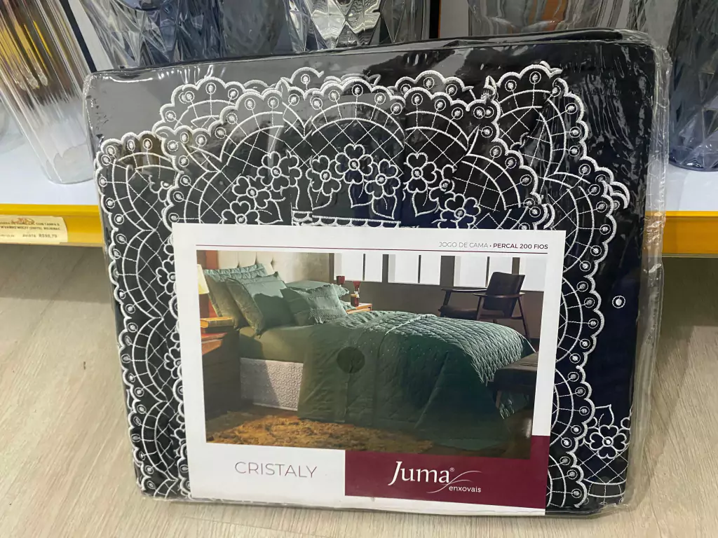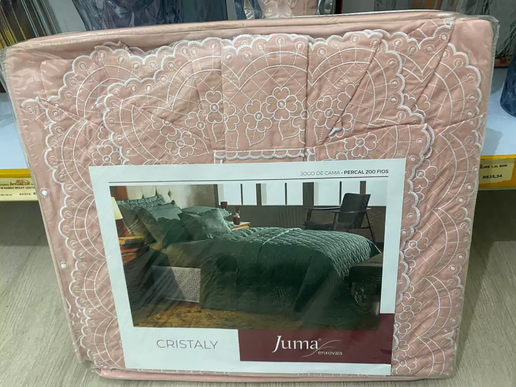 A coleção Cristaly foi inspirada no estilo artístico Rococó mesclando com a modernidade do geométrico. Feito em tecido Percal 200 Fios com delicados toques de costura, a coleção Cristaly deixará seu quarto como um ambiente de realeza.