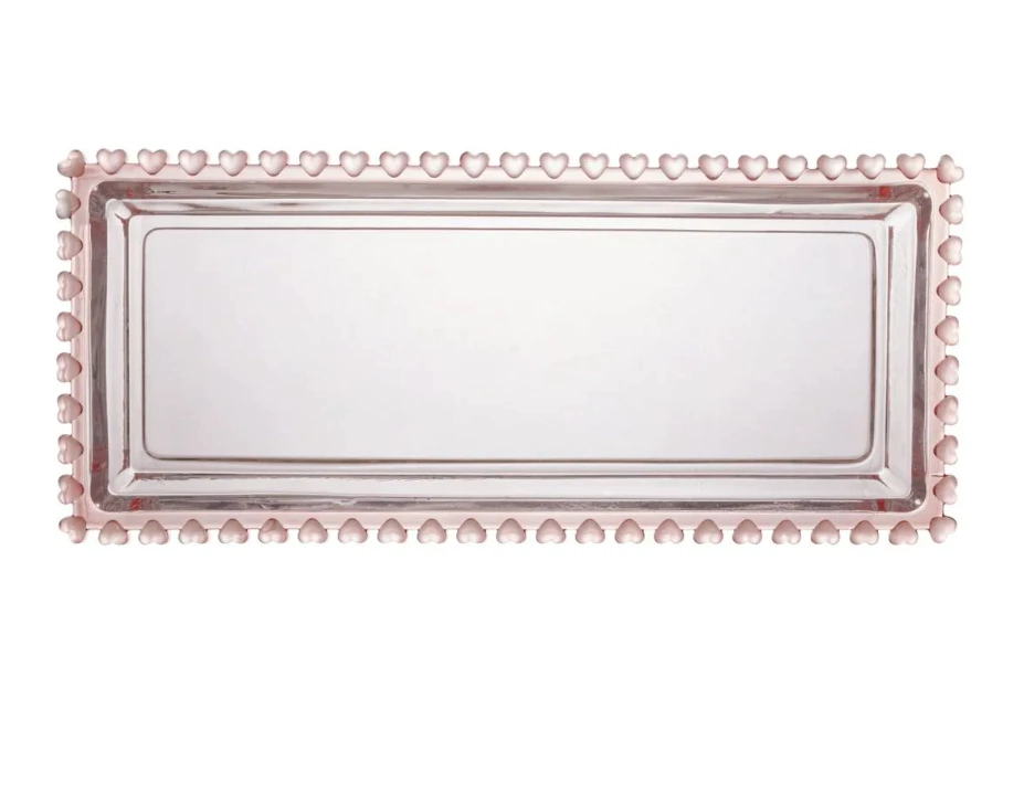 Travessa Retangular de Cristal Coração Borda Rosa 30cm x 13cm x 3cm - Lyor