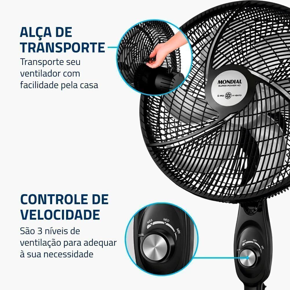 A linha de Ventiladores Super Power possui 40cm de diâmetro e 6 Pás. O design, aliado à potência, promove maior intensidade do vento e é garantia de um ambiente fresco e agradável.