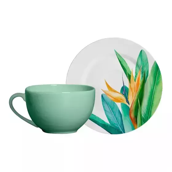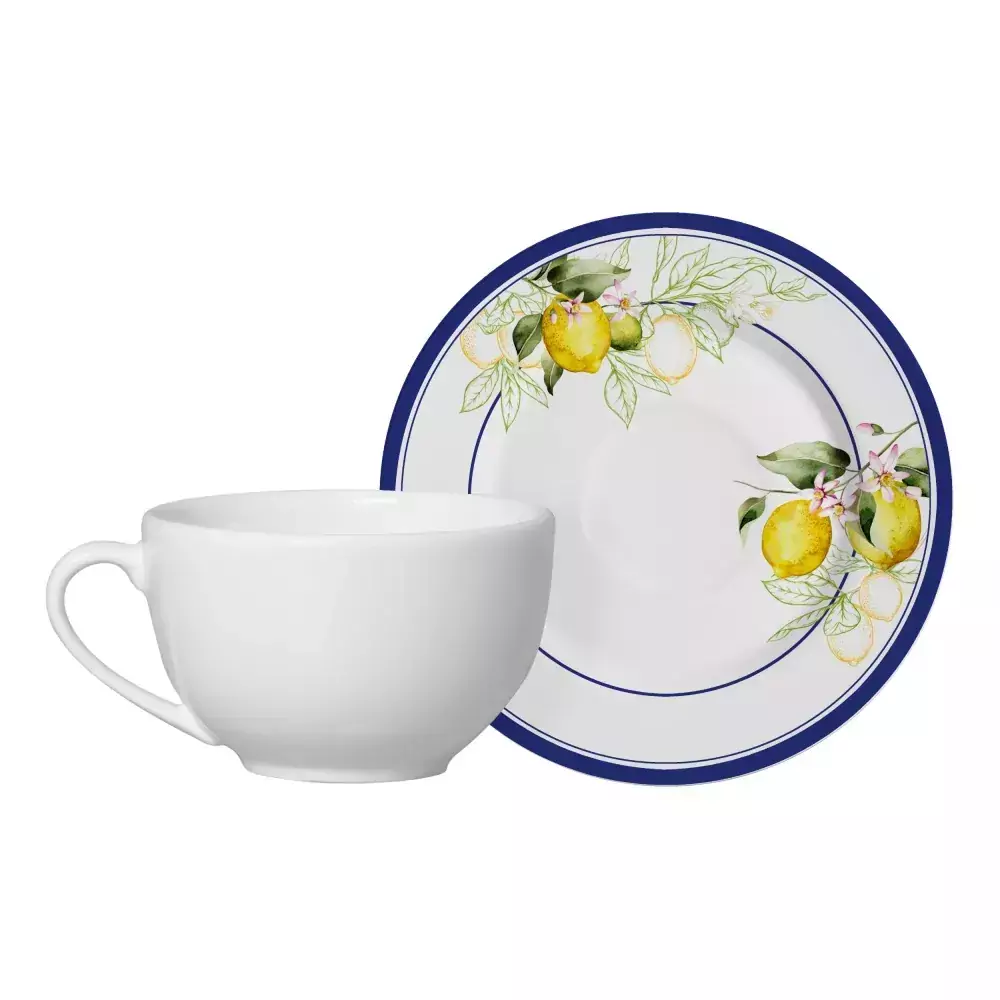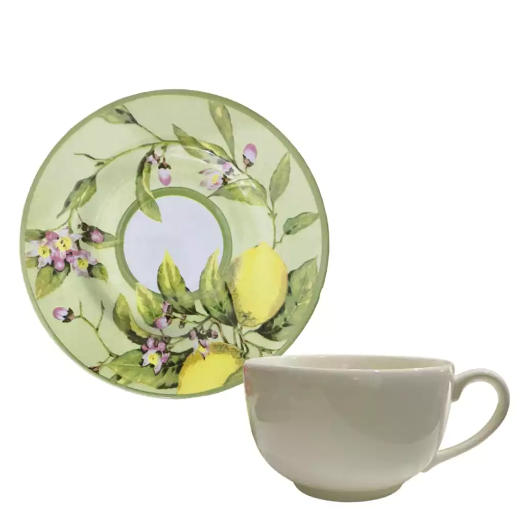 A Xícara de Café com Pires elaborada em cerâmica feldspática branca de alta resistência, com processo de decoração digital, sobre a base branca. Produto não refratário, pode ser levada ao micro-ondas e lava-louças, pois não libera substâncias tóxicas. Em suas instalações pra lá de modernas a Cerâmica Alleanza vem produzindo joias na forma de pratos, quer sejam em estampas clássicas quer sejam nas mais modernas e arrojadas, como você pode comprovar.